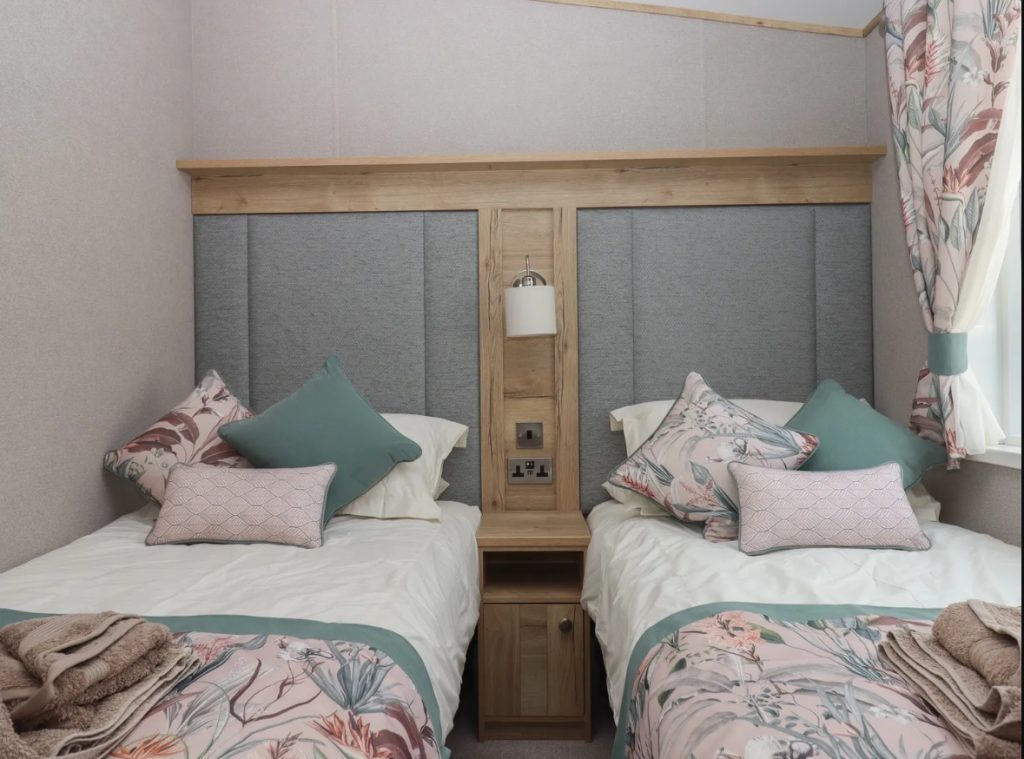 • Two bedrooms; 1 x double with en-suite with walk-in shower, basin and WC, 1 x twin bedroom.