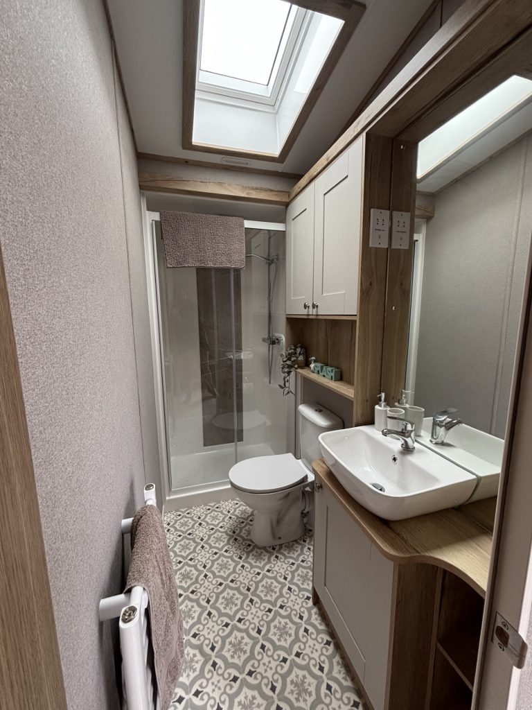 • Bathroom with shower, basin and WC